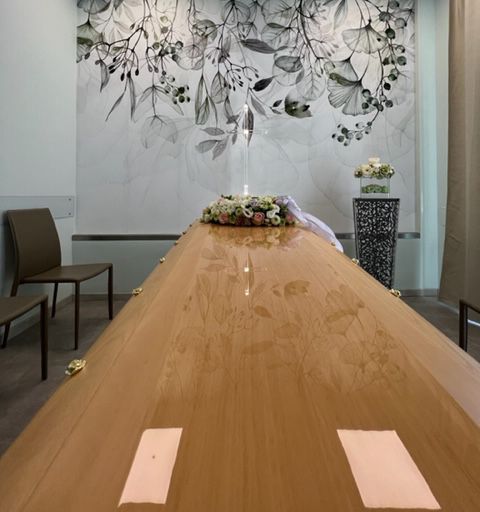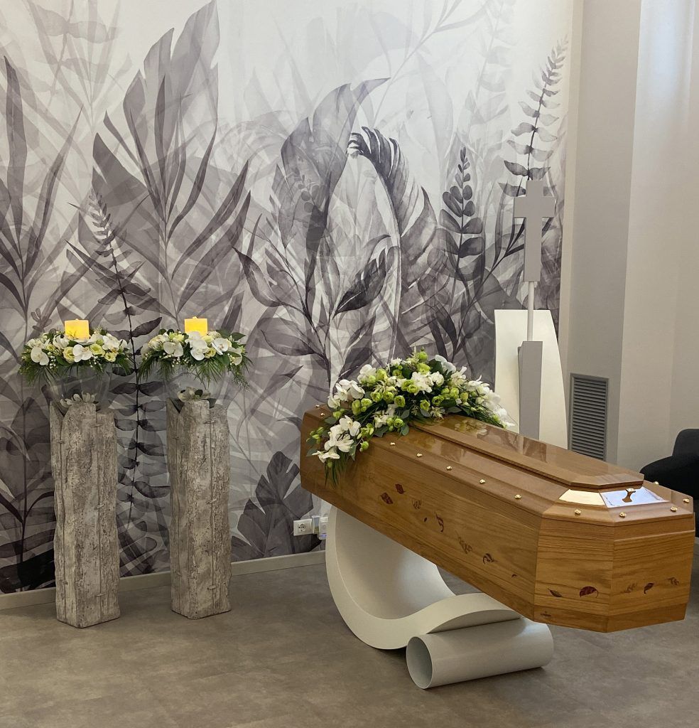 Gli ambienti confortevoli della nostra casa funeraria sono stati creati con lo scopo di farvi sentire in un ambiente familiare, caldo e a vostra disposizione. Troverete anche una sala ristoro, che potrà ospitare, su richiesta, un eventuale servizio catering.