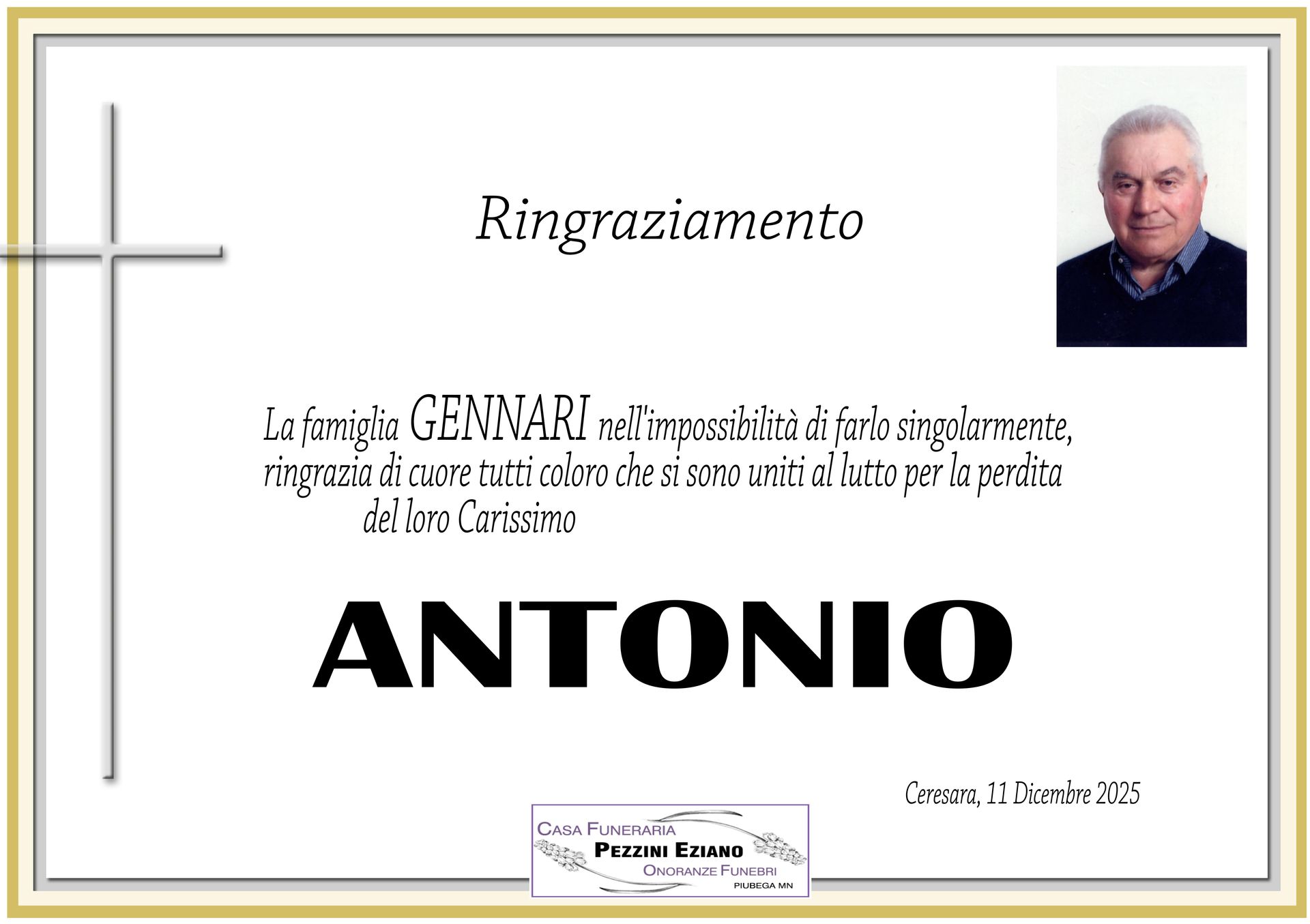 Ringraziamento Amedeo Gandolfi